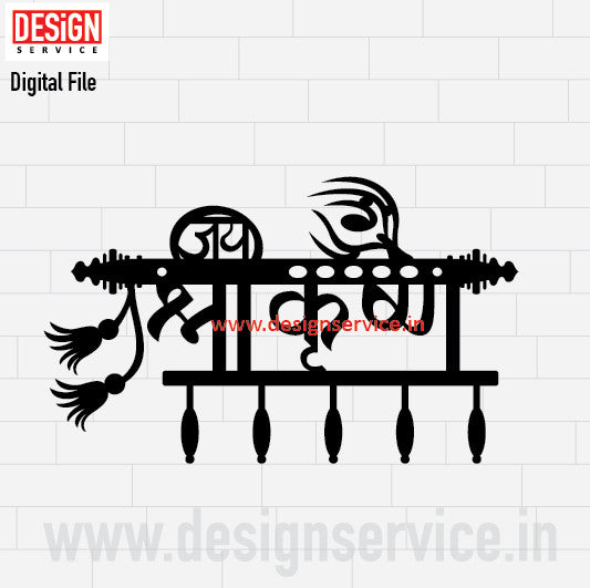 Laser Cutting Design Lord Krishna with Flute Metal Key Holder